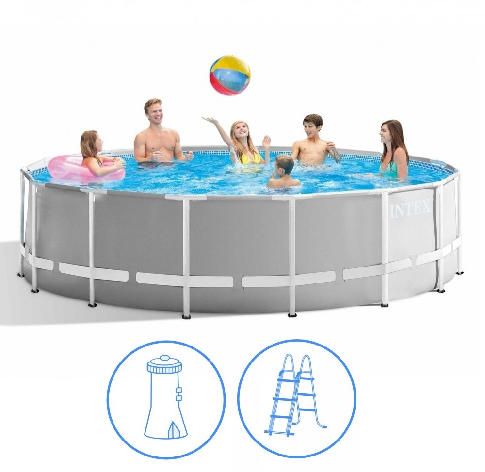 - A medencetest tartalmazza a bekötőcsonkot- 2 m3/h papírszűrős vízforgató bekötőcsővel- Védettsége: IPX7- Max. vízhőmérséklet: 35°C - 2 db 1,5 m hosszú bekötőcső - 4 db műanyag bilincs - 1 db "A" filter tartozék- Víztérfogat: 8,592 m3 - Vízkapacitás: 90% - Max. vízmagasság: 84 cm - 91-107 cm biztonsági létra- 3 rétegű szöveterősített fólia, fém tartószerkezettel- Stabil ovális lábkonstrukció- Innovatív kompozit UV- és korrózióálló T-idom: nincs szükség stiftre az elemek összeillesztéséhez, egyszerűen összetolhatóak az elemek- 6 éves kortól ajánlott- Hydro Aeration Technology: légbefúvásos falátvezető szettel rendelkezik- Szükséges terület: 366 x 366 cm - Dobozolt méret: 49 x 39 x 116,2 cm- Súlya: 40,4 kgIntex Prism Frame Pool kerek medence használati útmutató