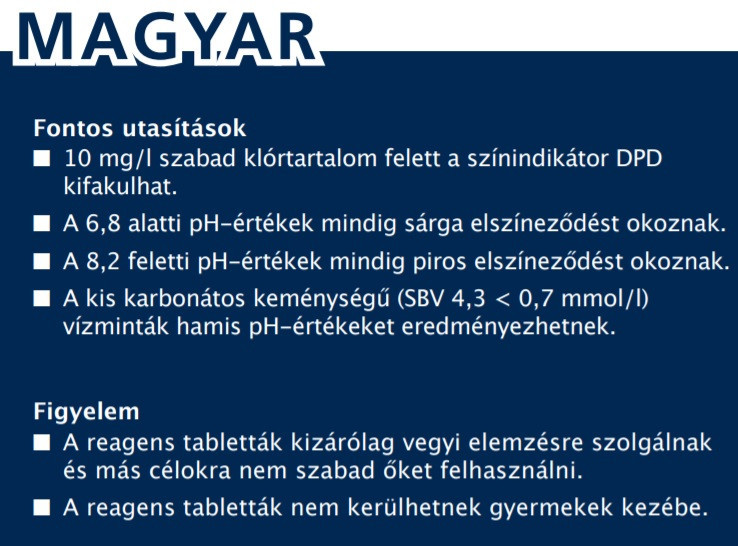 - Klóros vízkezelés esetén ajánlott a használata- 20 db pH + 20 db klór mérő tablettát tartalmaz a készlet- Mérési tartomány: Klór 0,1-3 pH 6,8-8,2- Méret: 10,8 x 11 x 4,3 cm- Súly: 186 gr