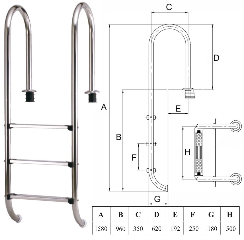 - Sós vizes medencéhez AISI316-os anyagú létra szükséges!