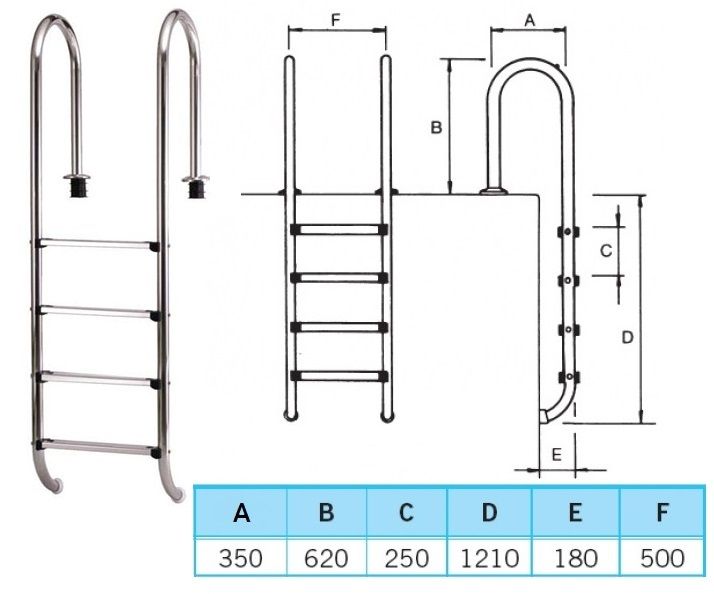 Medence létra rozsdamentes 4 fokos kis ívű AISI304 #87132049N