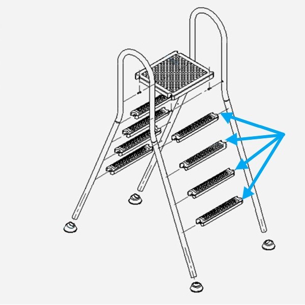 Műanyag fehér létrafok rozsdamentes föld feletti medencelétrához