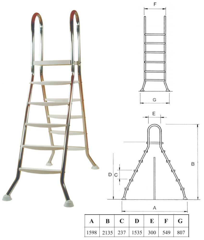 Létra rozsdamentes kétágú 5+5 fokos medenceméret 150cm