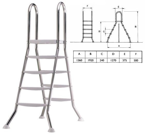 Létra rozsdamentes kétágú 4+4 fokos medenceméret 120cm 05521